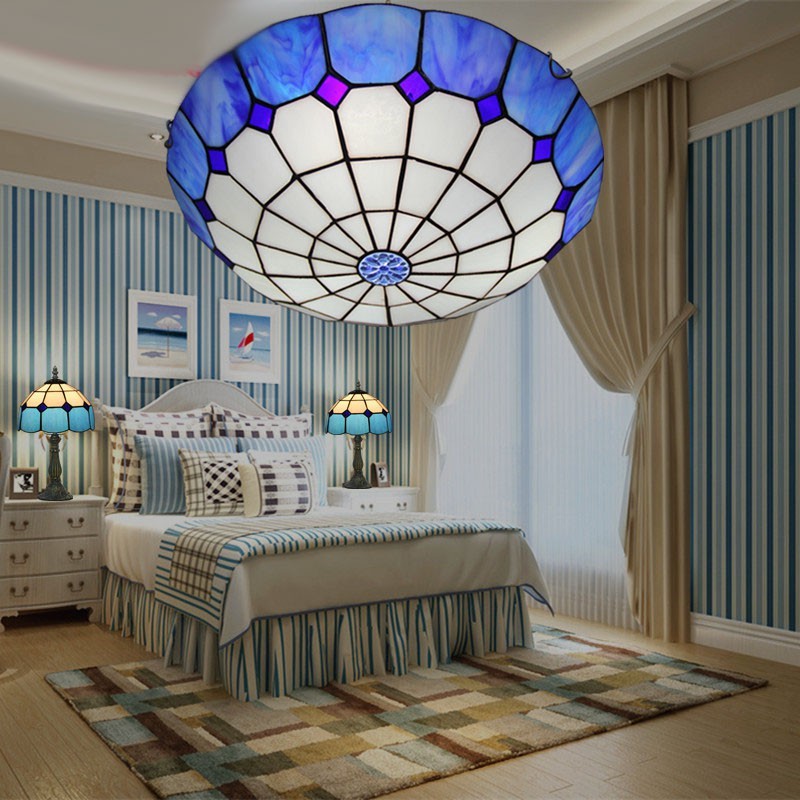 Vitral mediterrâneo Tiffany embutido de 40 cm